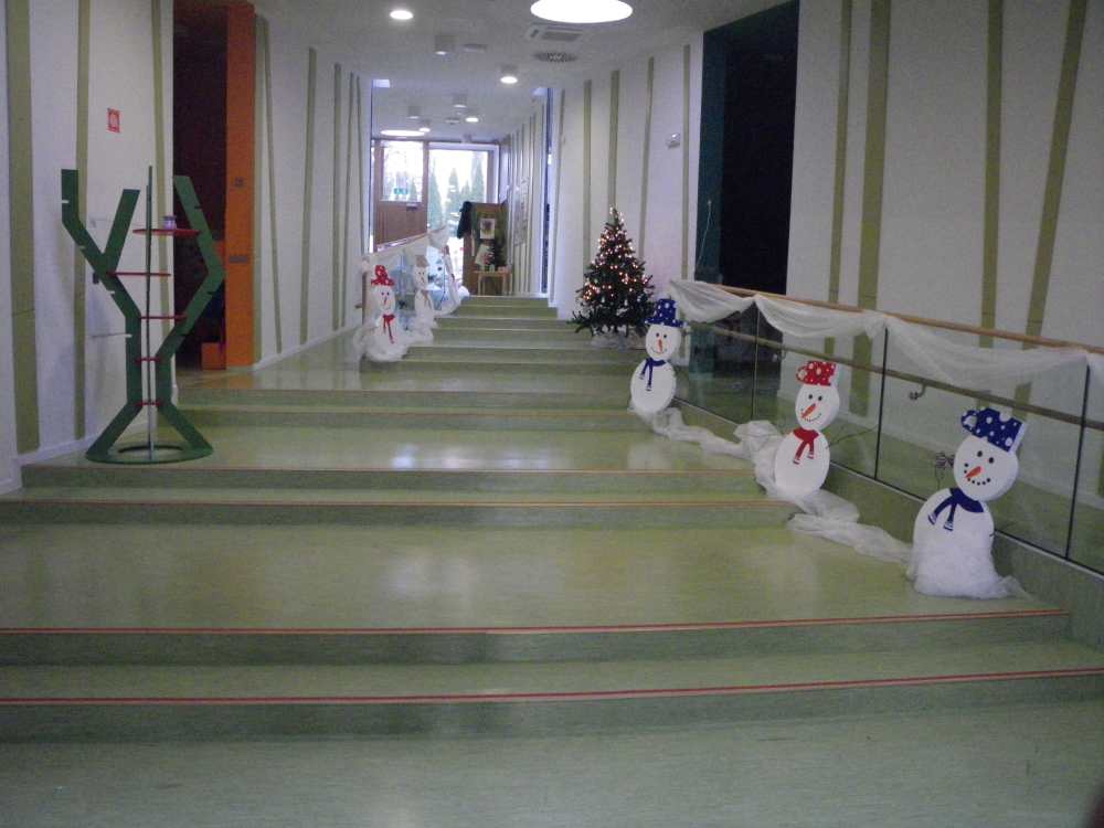 V hodniku in na stopnicah (skupaj 200 m2) je položena homogena PVC talna obloga GAMRAT SPECJAL 43 Plus, v roli, debeline 2 mm, katero odlikuje izjemna trajnost in nizki vzdrževalni stroški.