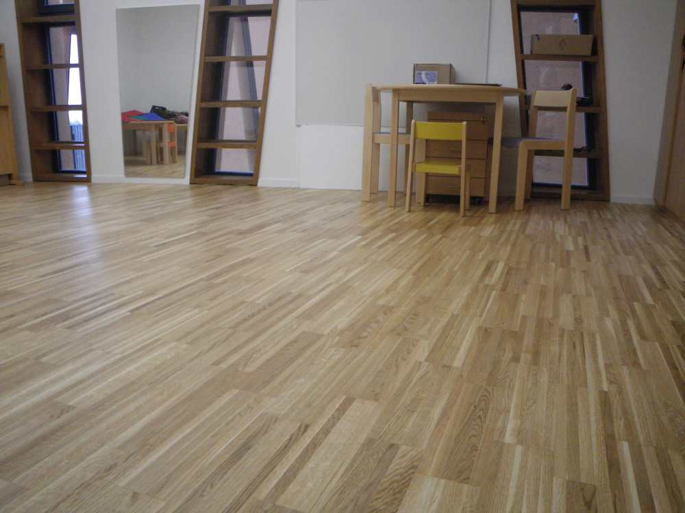 V novogradnji vrtca Cerkvenjak smo na estrih s talnim ogrevanjem v igralnicah in zbornici položili 350 m2 izgotovljenega parketa WEITZER Strip 45, hrast struktur, katerega odlikuje izjemna debeline vrhnjega obrabnega sloja (4,5 mm) in moderen design.